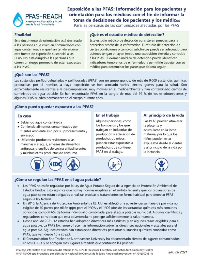 Este documento de orientación está destinado a las personas que viven en comunidades con agua contaminada o que han tenido alguna otra fuente de exposición sustancial a las PFAS. No está dirigido a las personas que corren un riesgo promedio de estar expuestas a las PFAS.