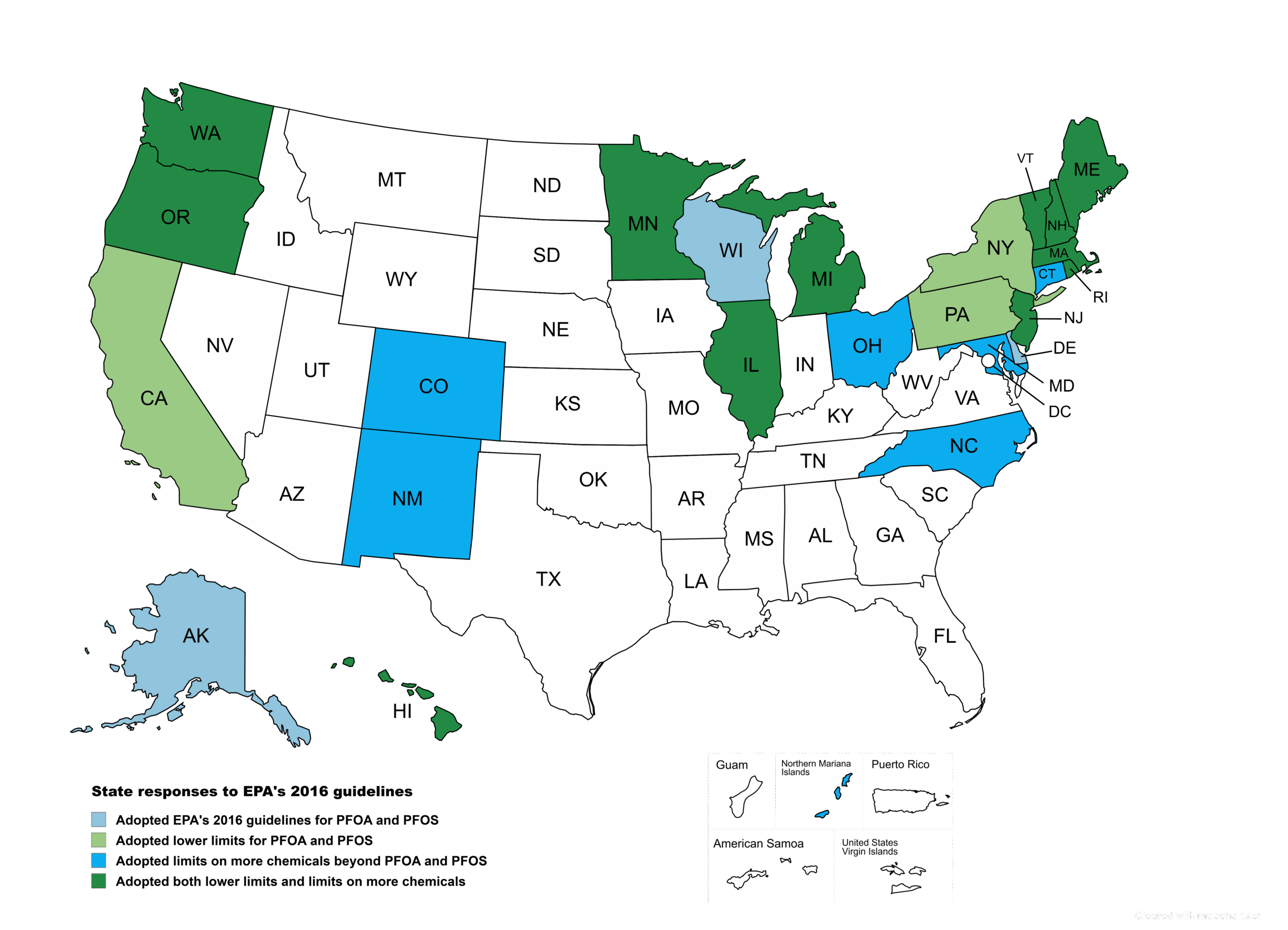 However, many scientists and regulators believed these guideline levels were not protective enough of human health. As a result, a number of states took the lead in establishing their own MCLs or guideline levels for PFAS that were stricter than the federal guidelines. This led to a patchwork of rules across the country for how to address PFAS contaminants in drinking water and limit the public’s exposure.
